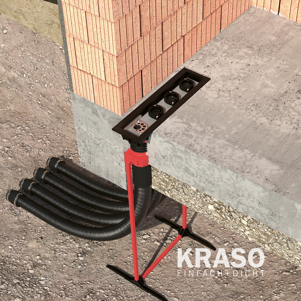 više komunalni priključak za opskrbne vodove (plin, voda, struja, telekomunikacija) za zgrade bez podruma uklj. KRASO FLS 90, instalacijski kompleti za električnu energiju/vodu (2 x), telekomunikacije, električne energije + telekomunikacije kao standardnu konfiguraciju za KRASO BKP - pod - SET - 4-skupno, željena konfiguracija za KRASO BKP - pod - SET - 3-s puta, 2-s puta, KRASO BKP Gas Instalacijski Kompleti su po izboru - DafStB vodootporna betonska smjernica: naprezalica 1